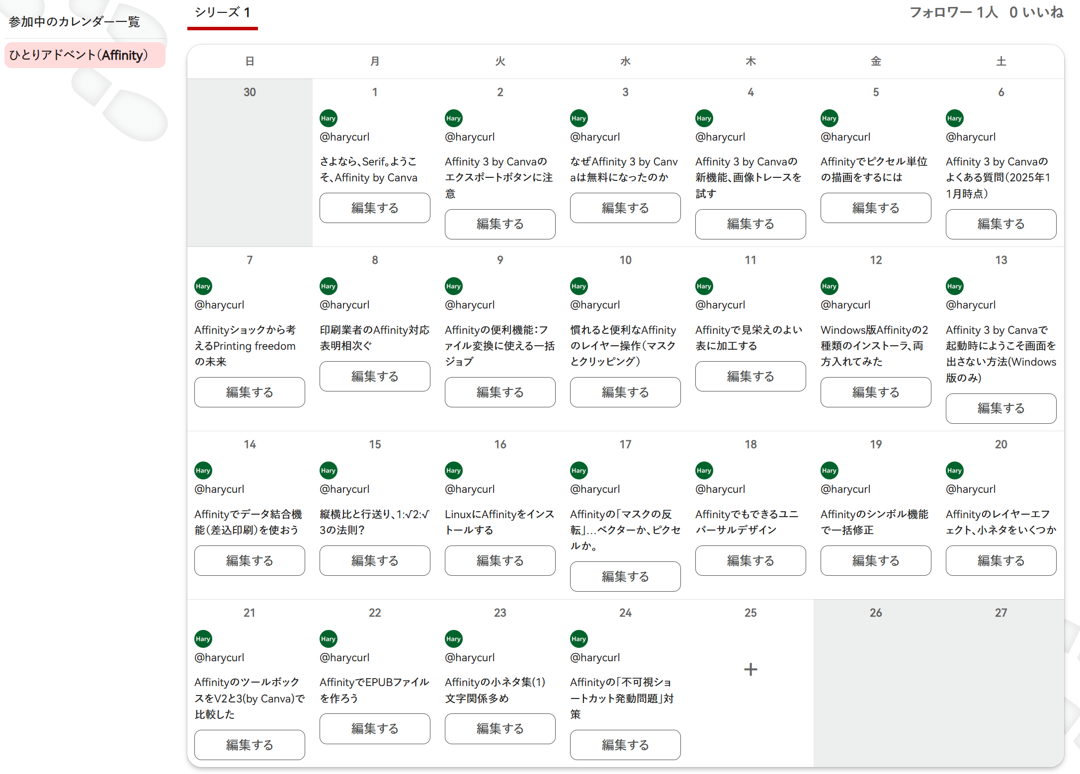 10月31日のAffinity by Canva発表以降、毎日のように書く内容があっての完走だったが、今後もAffinity関係のネタがあれば記事化していこうと思っている。