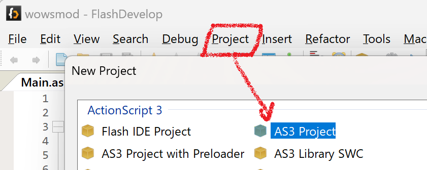 ・プロジェクトと同フォルダにwows_library.swcをコピー