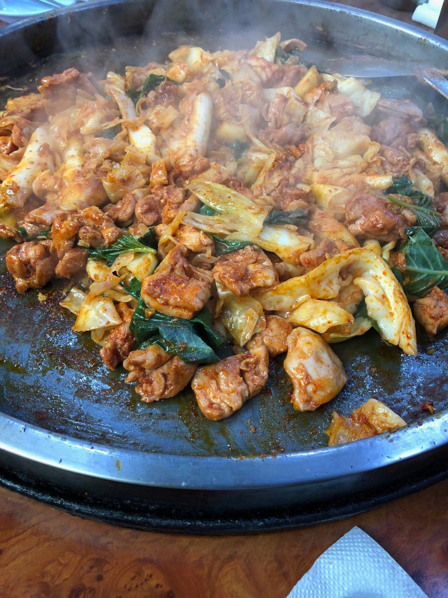 日本ではチーズタッカルビが流行っているようですが本場の(チーズなし)タッカルビは辛かったです。