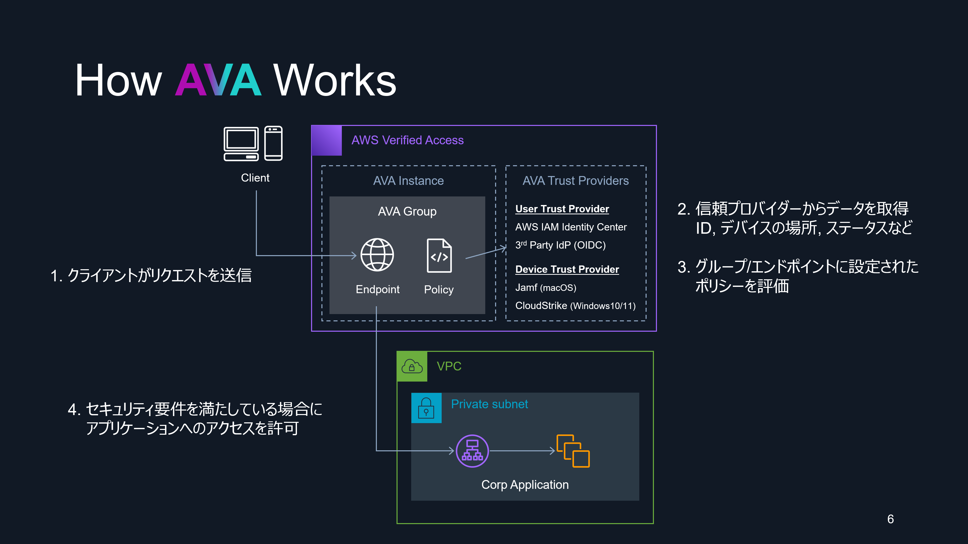 AWS Verified Access (AVA) は AWS re:Invent 2022 で発表された新サービスです。