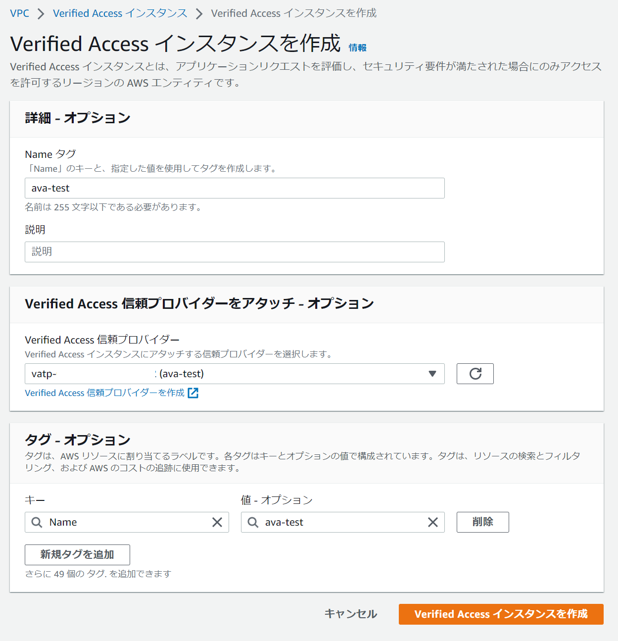 - 任意の Name タグを設定し、関連付ける Verified Access グループを選択します