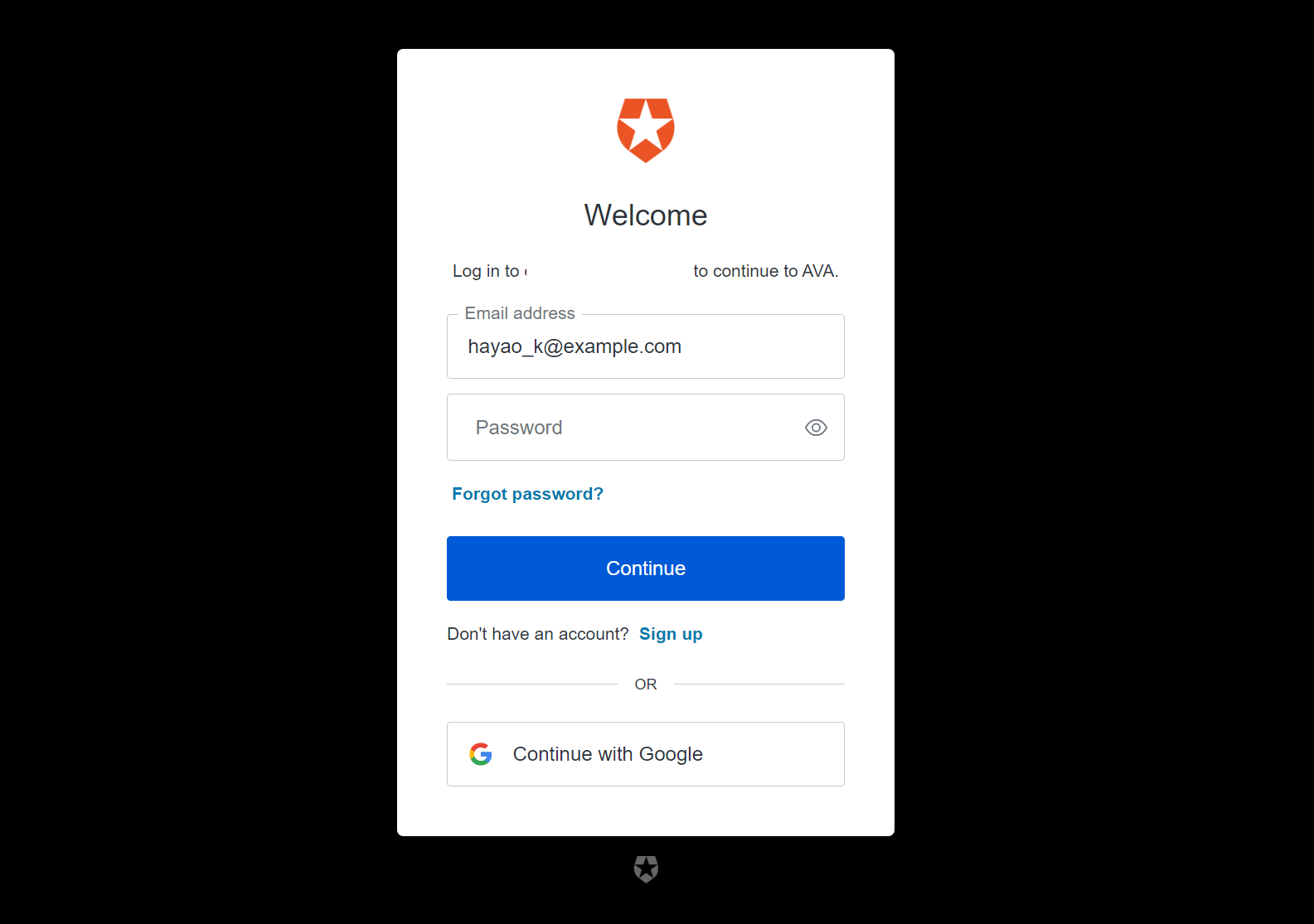 エンドポイントに設定したアプリケーションドメインにアクセスすると、Auth0 でホストされるログイン画面に遷移します。