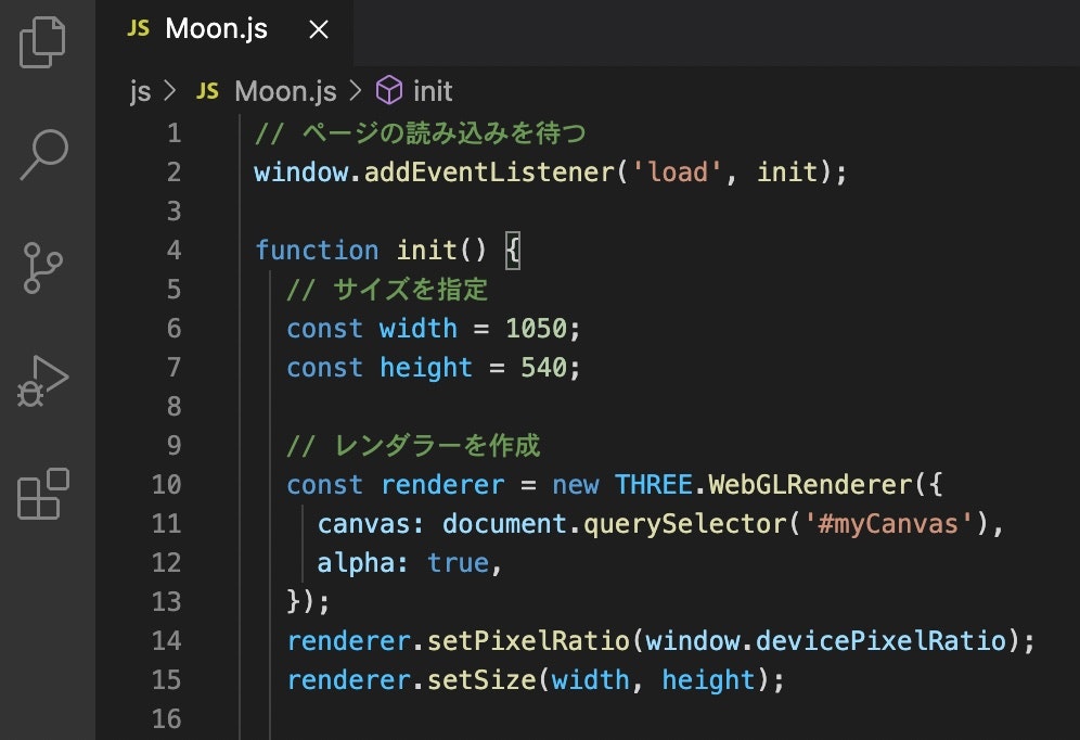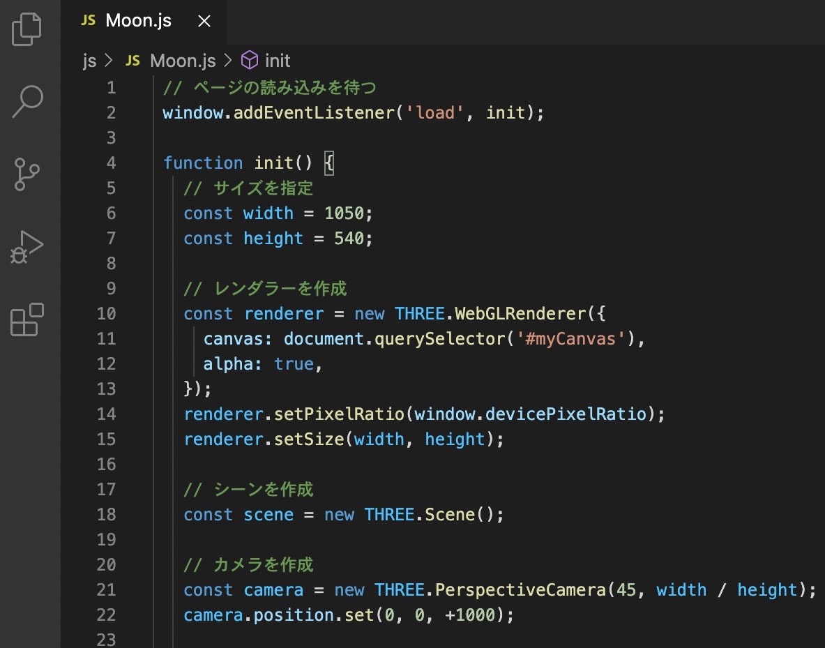 ここではjsフォルダ内のMoon.jsを読み込みます。