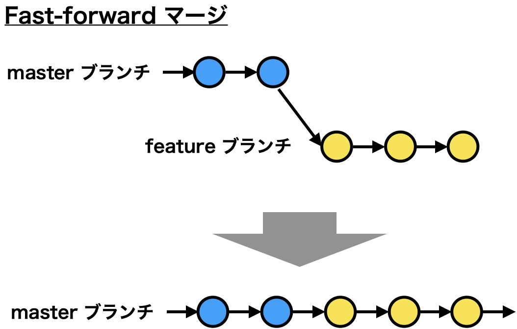 Git には、主に No-ff マージとFast-forward マージという2つのタイプがあります。