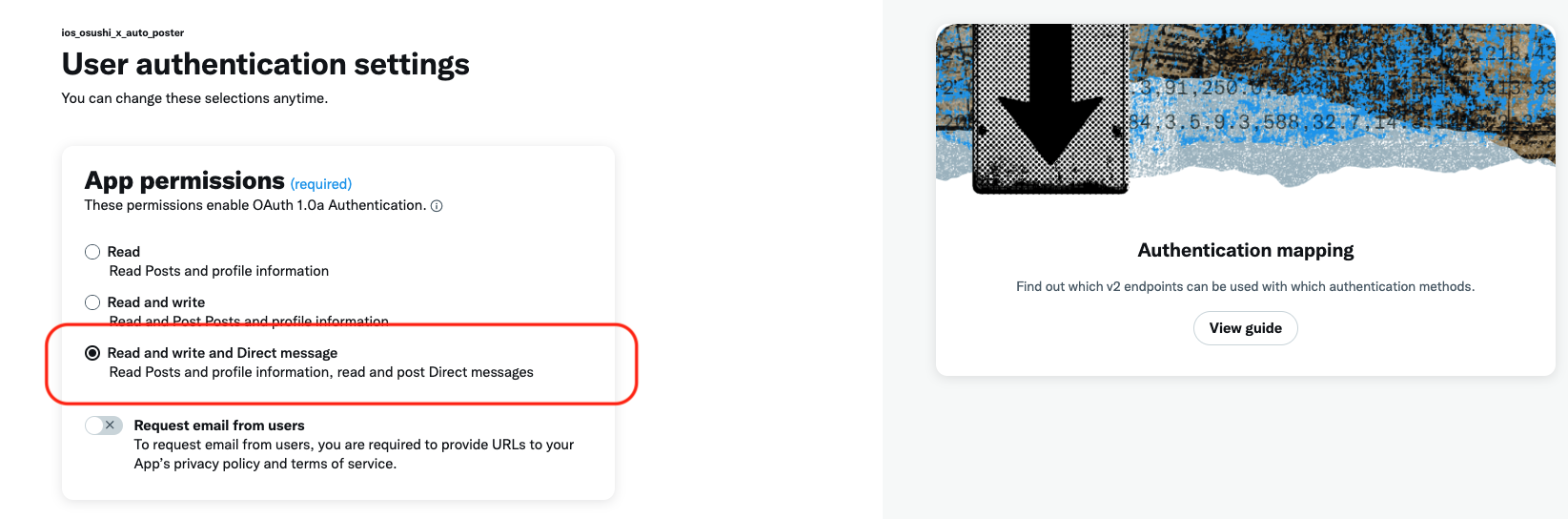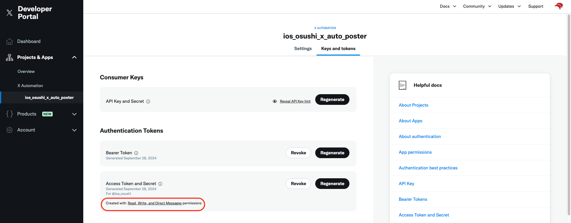 1点注意点として、Access Token Secret の権限に write があることを確認してください。