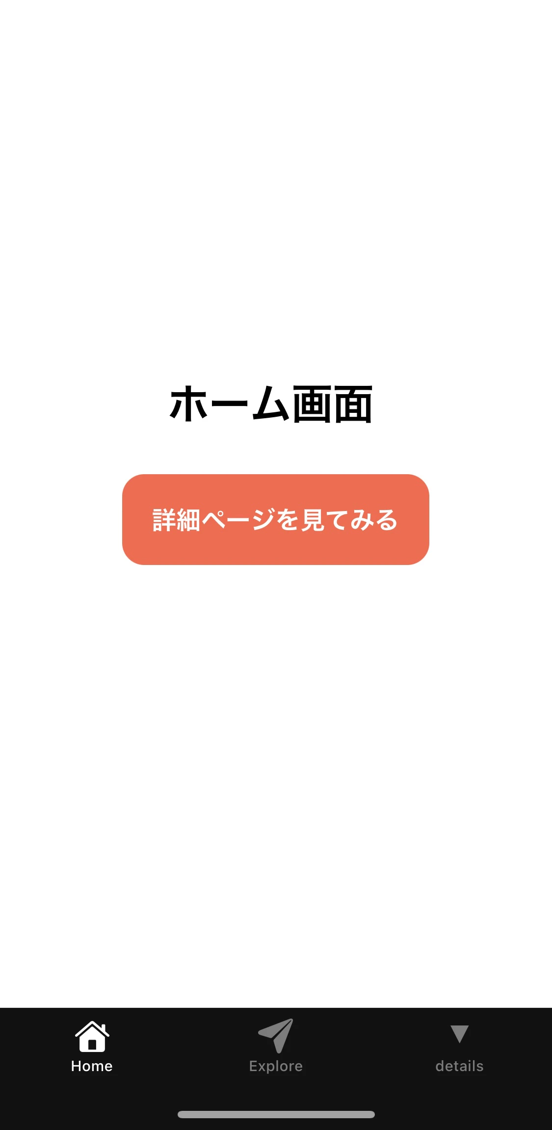次に、最初に作った app/(tabs)/index.tsx を書き換えて、「詳細画面へ行くボタン」を設置します。
