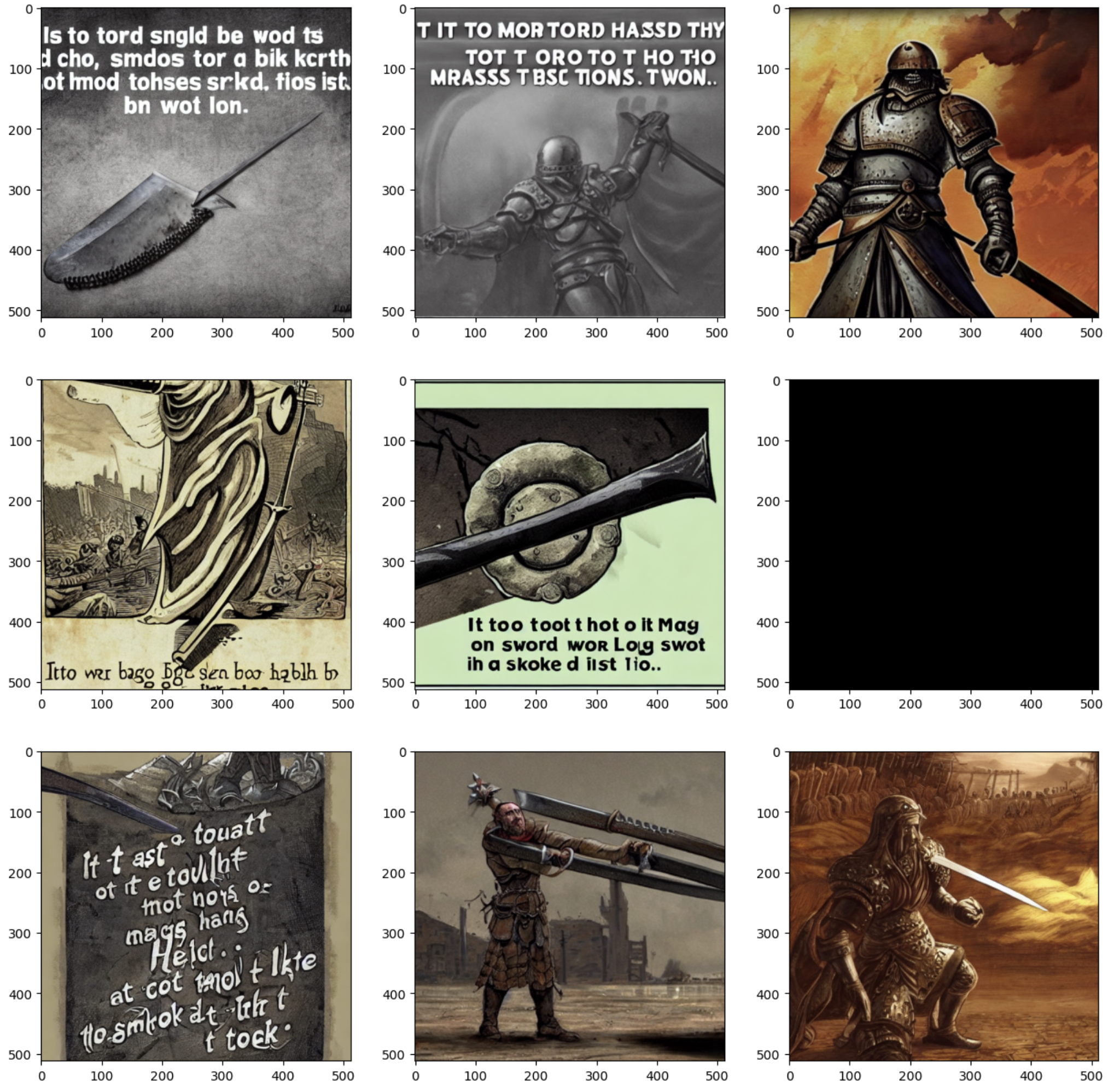 上記の例では 1 個だけ黒い画像となっていますが、画像生成時に以下のログが出力されており、NSFW(Not Safe For Work)=職場閲覧注意との理由で黒塗りとなるようです。