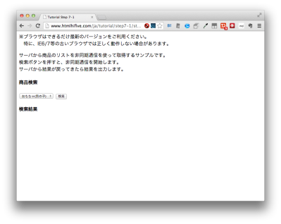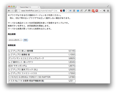 検索ボタンを押すと、外部からデータを取得してそれを一覧として表示します。