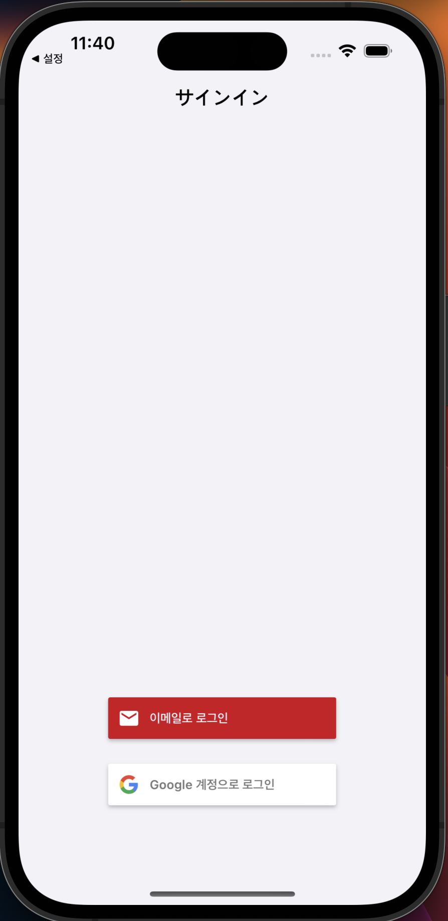 シミュレーターの設定 > 一般 > 言語と地域 > 優先する言語を韓国語にするとFirebaseUIを韓国語対応することができました!