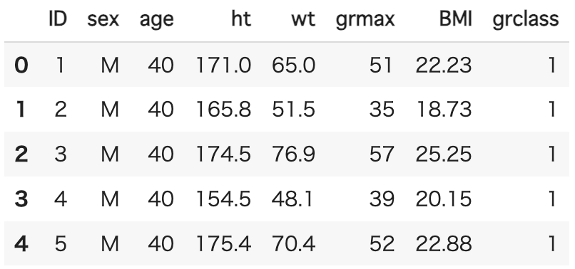 ・sex(性別)、age(年齢)、ht(身長)、wt(体重)、BMIの5つを用いる