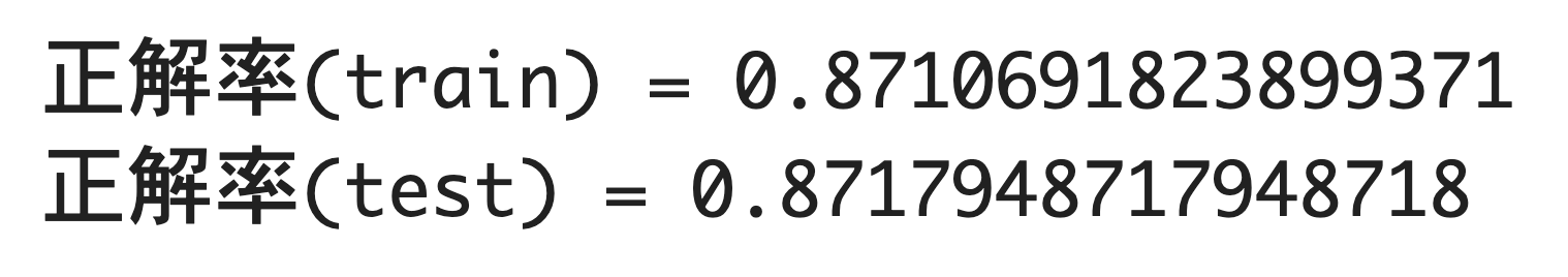 | (2)-1 正解率(train) | 訓練データにおける正解率。 | 0.8711 |