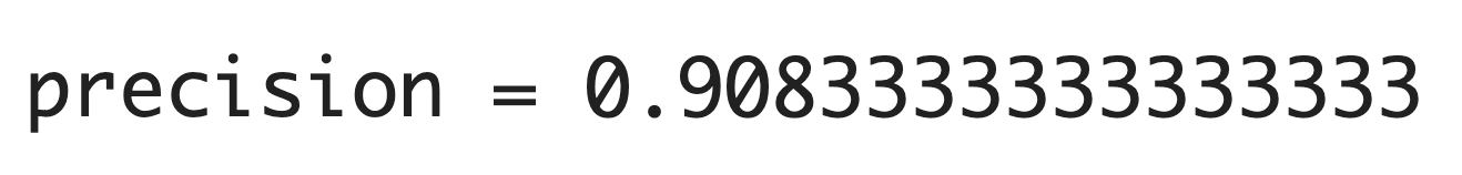 | (3) 適合率(precision) | 正と予測したものの正確さ。 | 0.9083 |