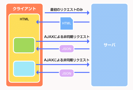 - Webページの更新はクライアント側で行い、ページ遷移を伴わない部分変更を行う為、高速に描画できる。