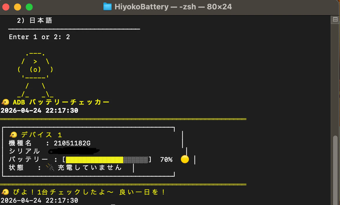 というわけで同じツール(ADBバッテリー表示スクリプト)を両方で作って比べた。