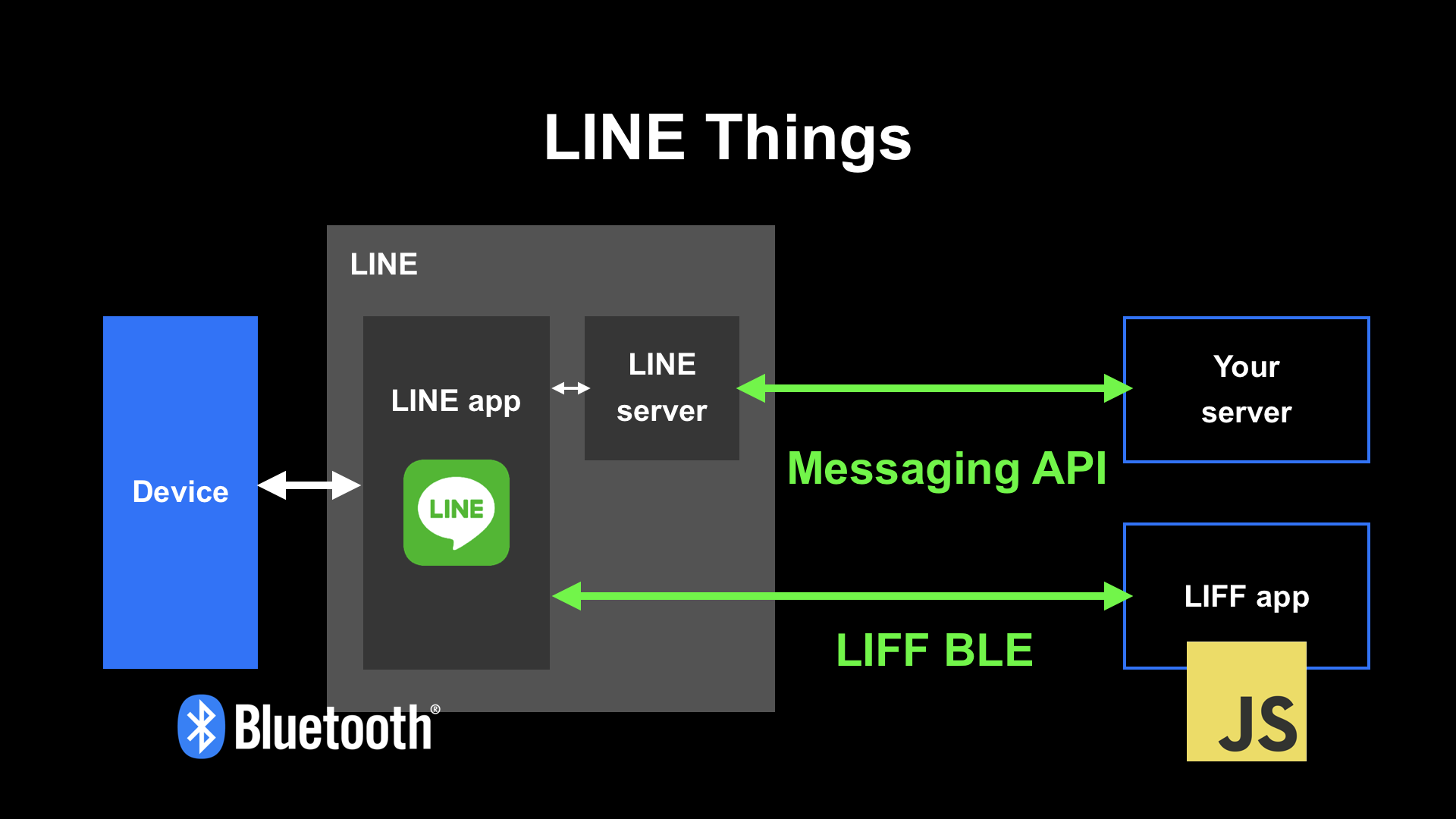 基本的には、LIFF も LINE Things も LINE Bot 機能の延長線 として開発されているので、Bot やメッセージングと連携する IoT デバイスの実現を目的としています。