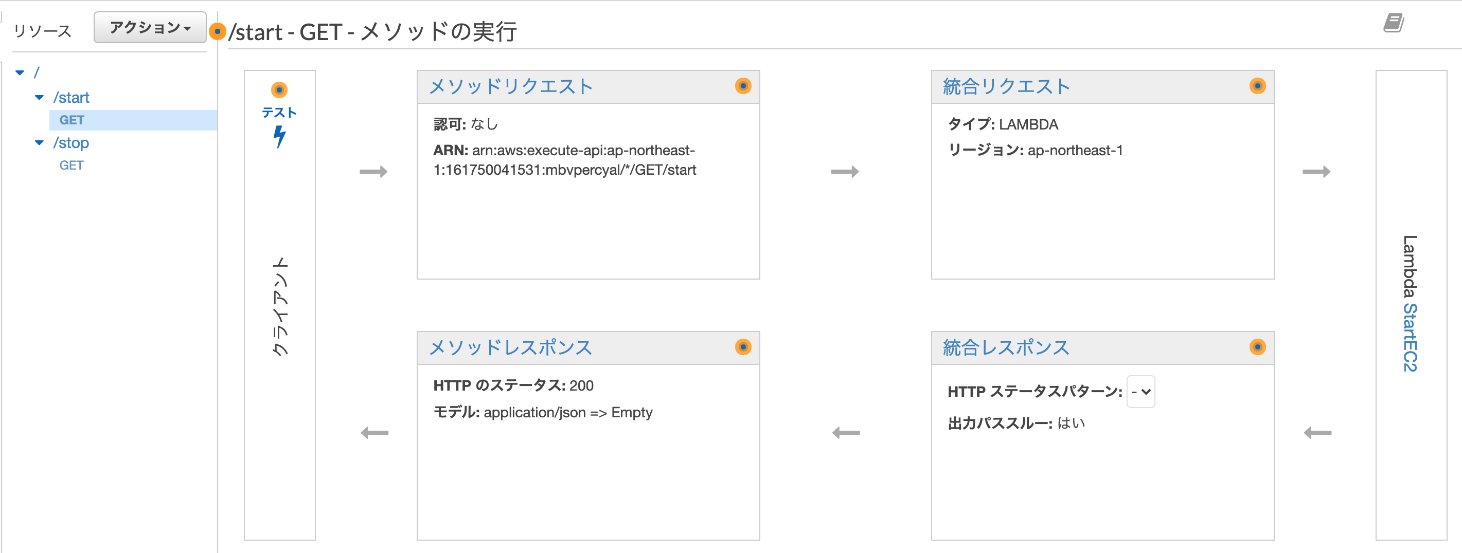 そして、html上でEC2を操作できるようLambdaを使用します。