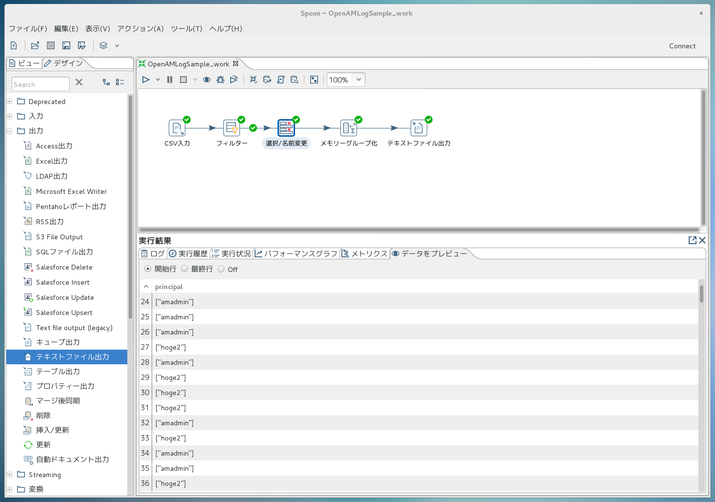 以上のように、OpenAM 13のログをPentaho DIで処理することができました。