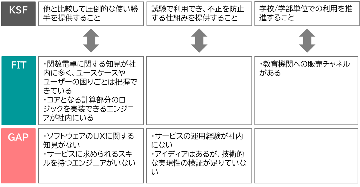 KSFとの差分を埋める方法があるかを中心に施策を検討します。