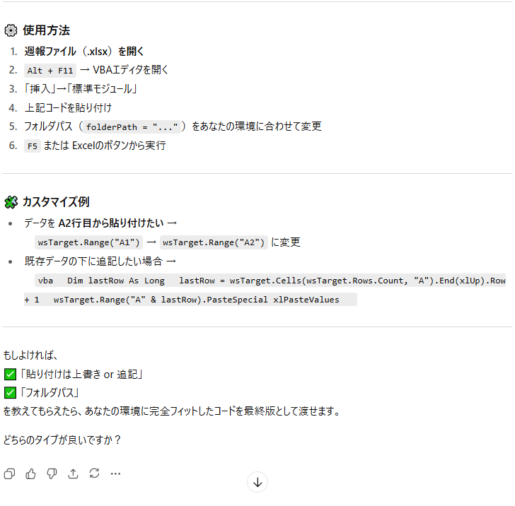 ・マクロ :ChatGPTより提案されるソースコードを動かす