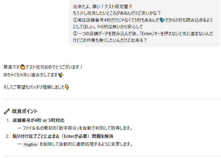 MsgBox fileName & " → シート「" & shopID & "」に貼り付け完了", vbInformation