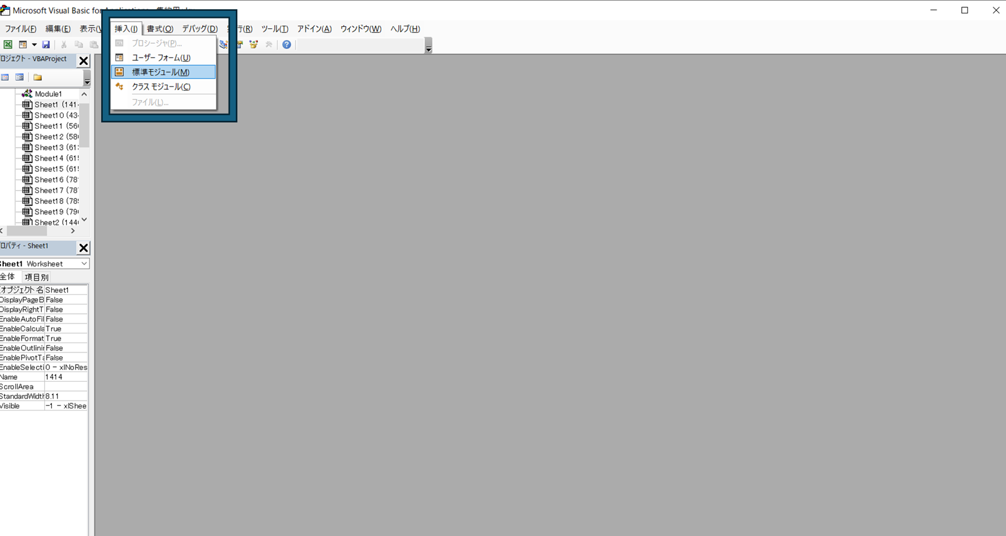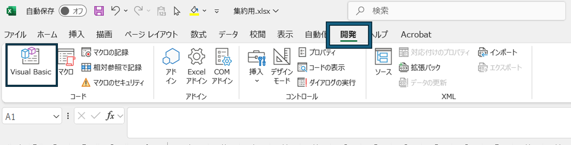 ※もし開発タブが無い場合はAltキー+F11キーでショートカット可