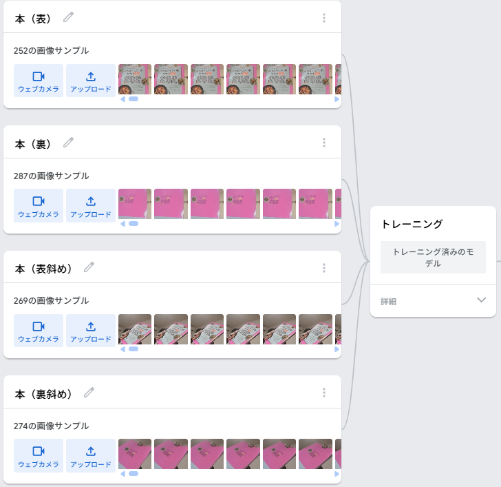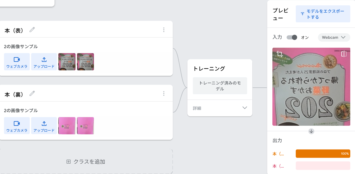 表と裏に1枚ずつ画像を登録できたら『モデルをトレーニングする』を