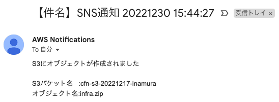 Message = "S3にオブジェクトが作成されました"
