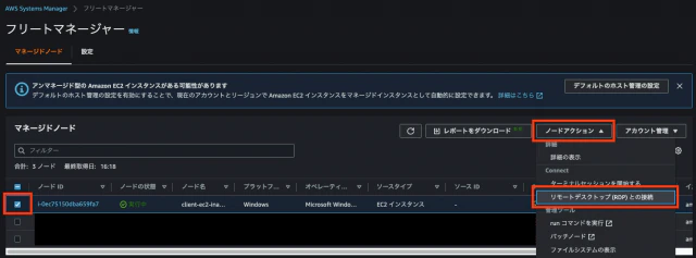 1. AWS SystemsManager の フリートマネージャーからアクセス