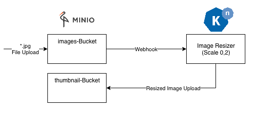 minioにファイルがアップロードされるのをトリガにして、イメージのリサイズを実行するアプリケーションをKnativeで作る。