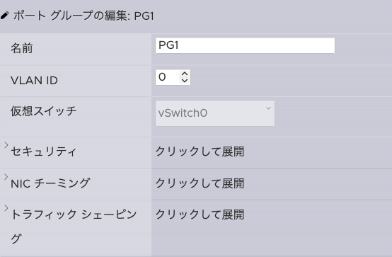 作成後、それぞのポートグループのNICチーミングを編集する。