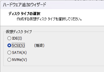 小生の環境では、新たにストレージ領域を用意する必要があった。まず、VMware Workstationにて、ハードティスク(SCSI)を追加。