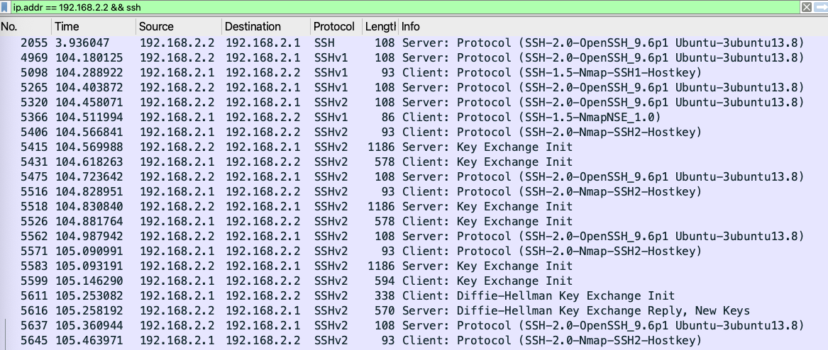 Wiresharkの状況は下記であった。以降、nmapの結果の次にWiresharkの結果を記す。