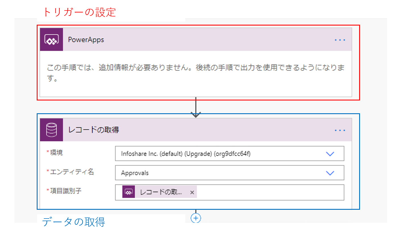 実行されたワークフローは、接続されたデータソースから後の処理で必要となるレコードのデータを取得します。