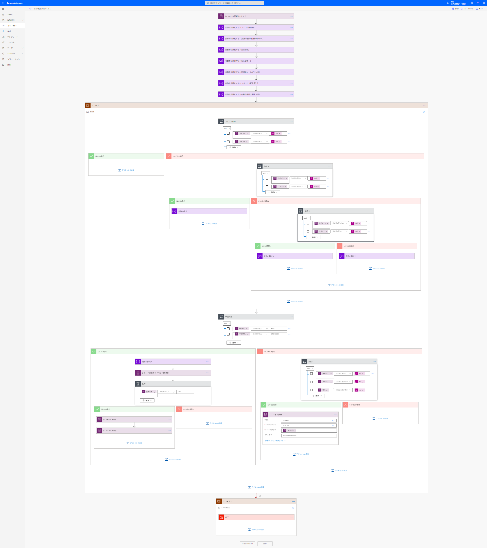 今回のプロジェクトでは上の画像のように条件分岐を繰り返しながら、アクションを加えるレコードの状態を判別し、状態によって異なる処理を実行するワークフローを作成しました。