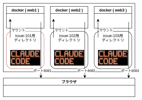 - ディレクトリごとにdockerのポート転送とマウントディレクトリを変えて起動するのが面倒くさそう