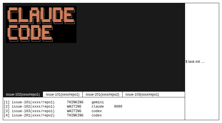 WAITING になったら、task fg issue-101 みたいなコマンドで前面に出す。
