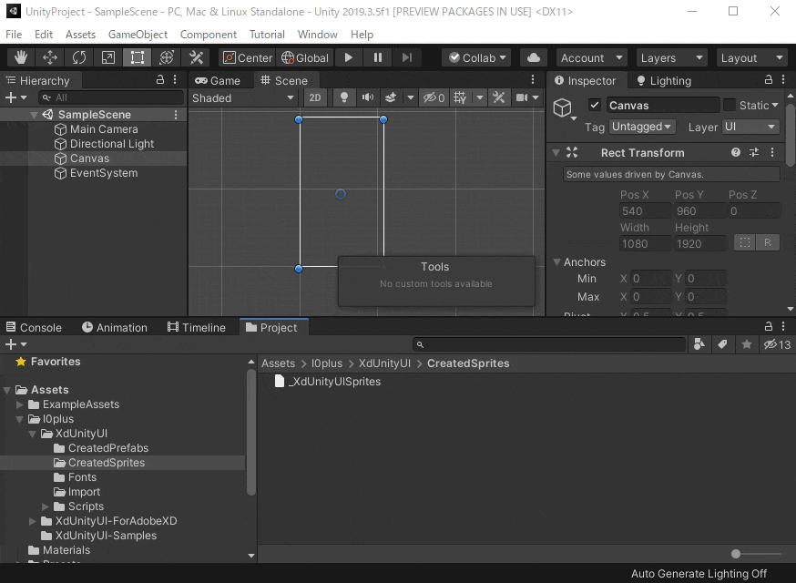 - XdUnityUI.unitypackage を Unity にインポートしてください。