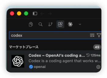 CodexプラグインはデフォルトでPrimary Side Bar(メインサイドバー・左側)に表示されますが、私はAIチャット画面をSecondary Side Bar(補助サイドバー・右側)に置く方がずっと使いやすいんです。
