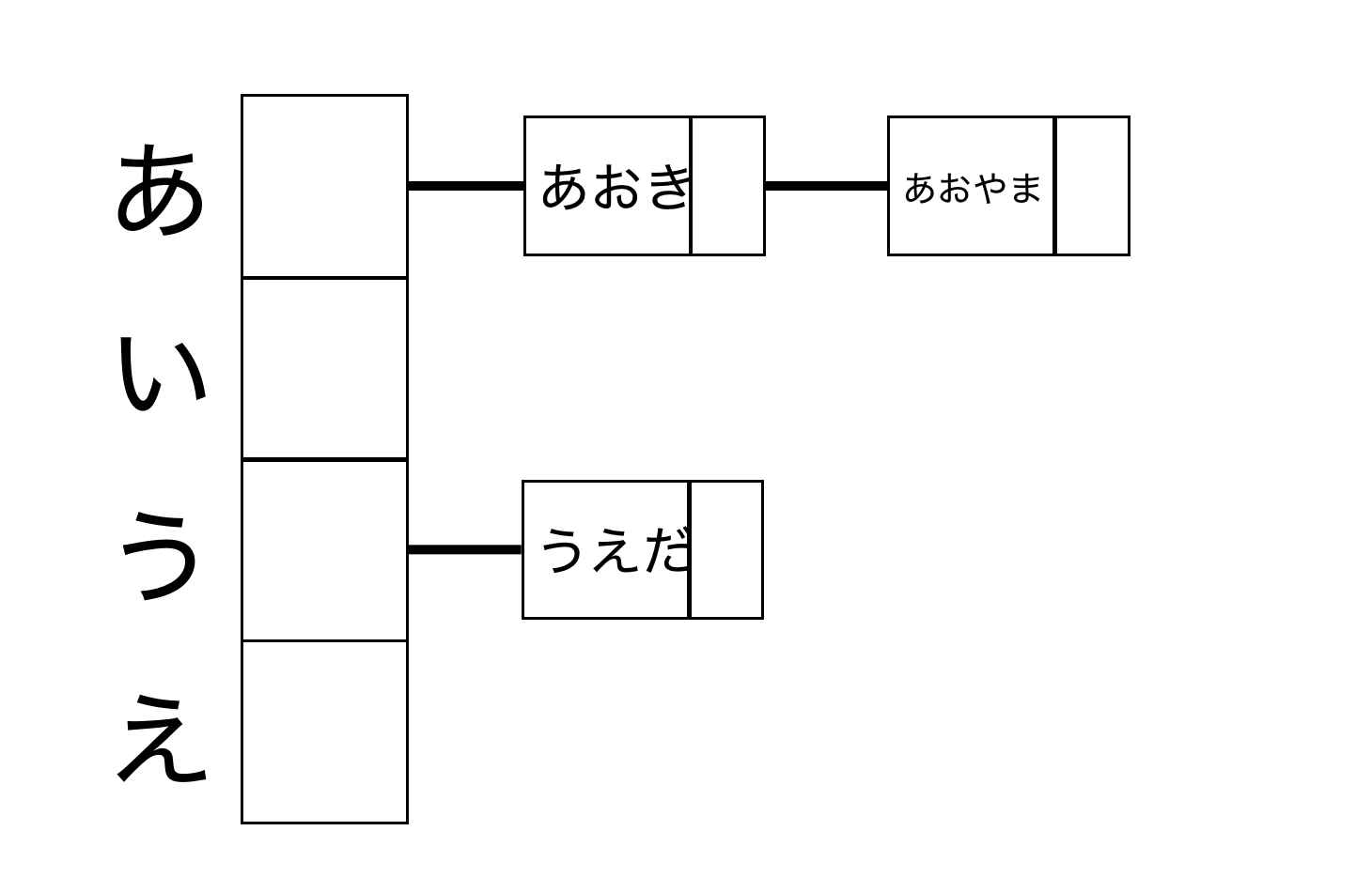 配列と連結リストを組み合わせたデータ構造→ 連結リストを要素とする配列