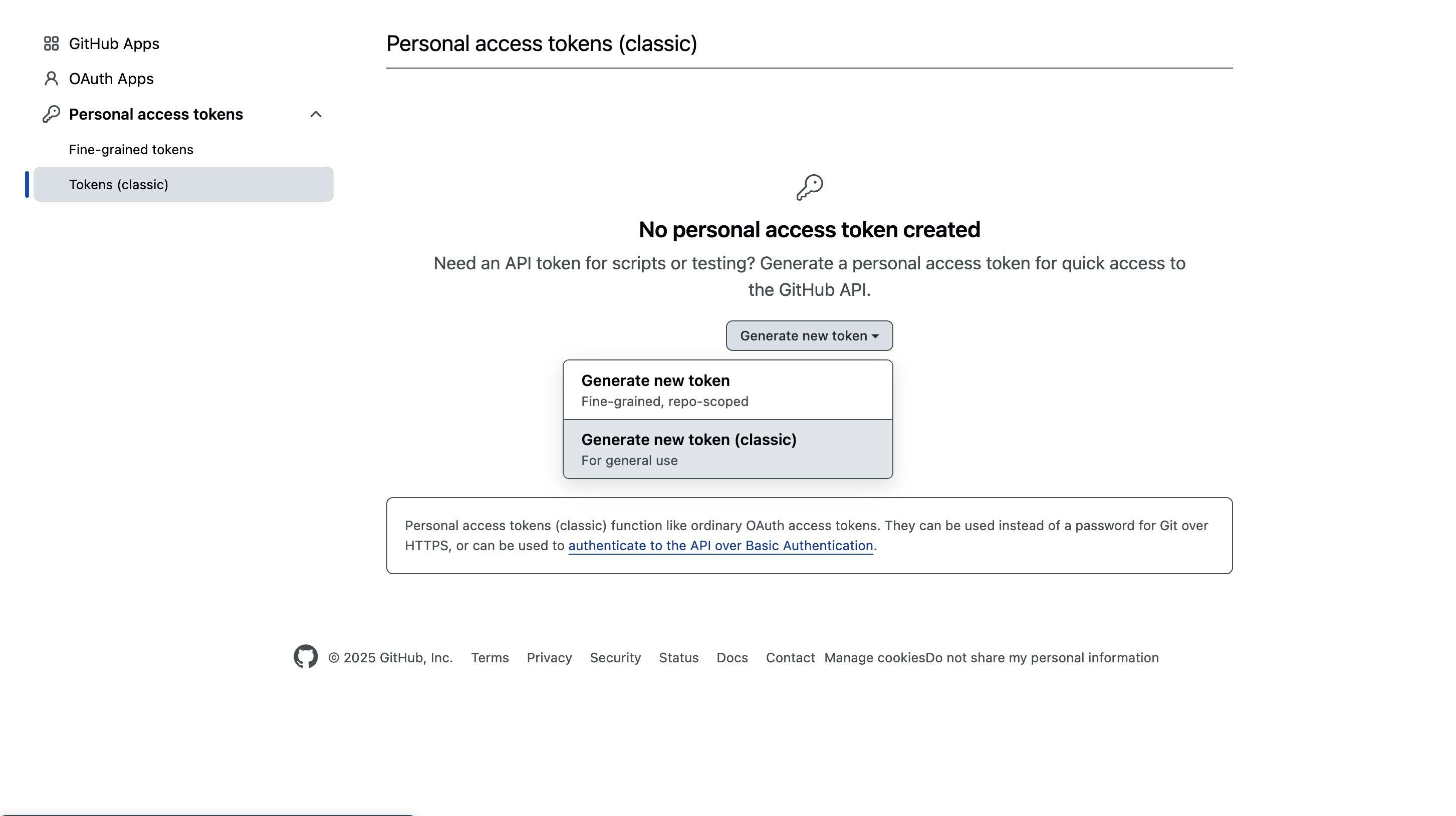 🔧 ステップ2:「Generate new token (classic)」を選択