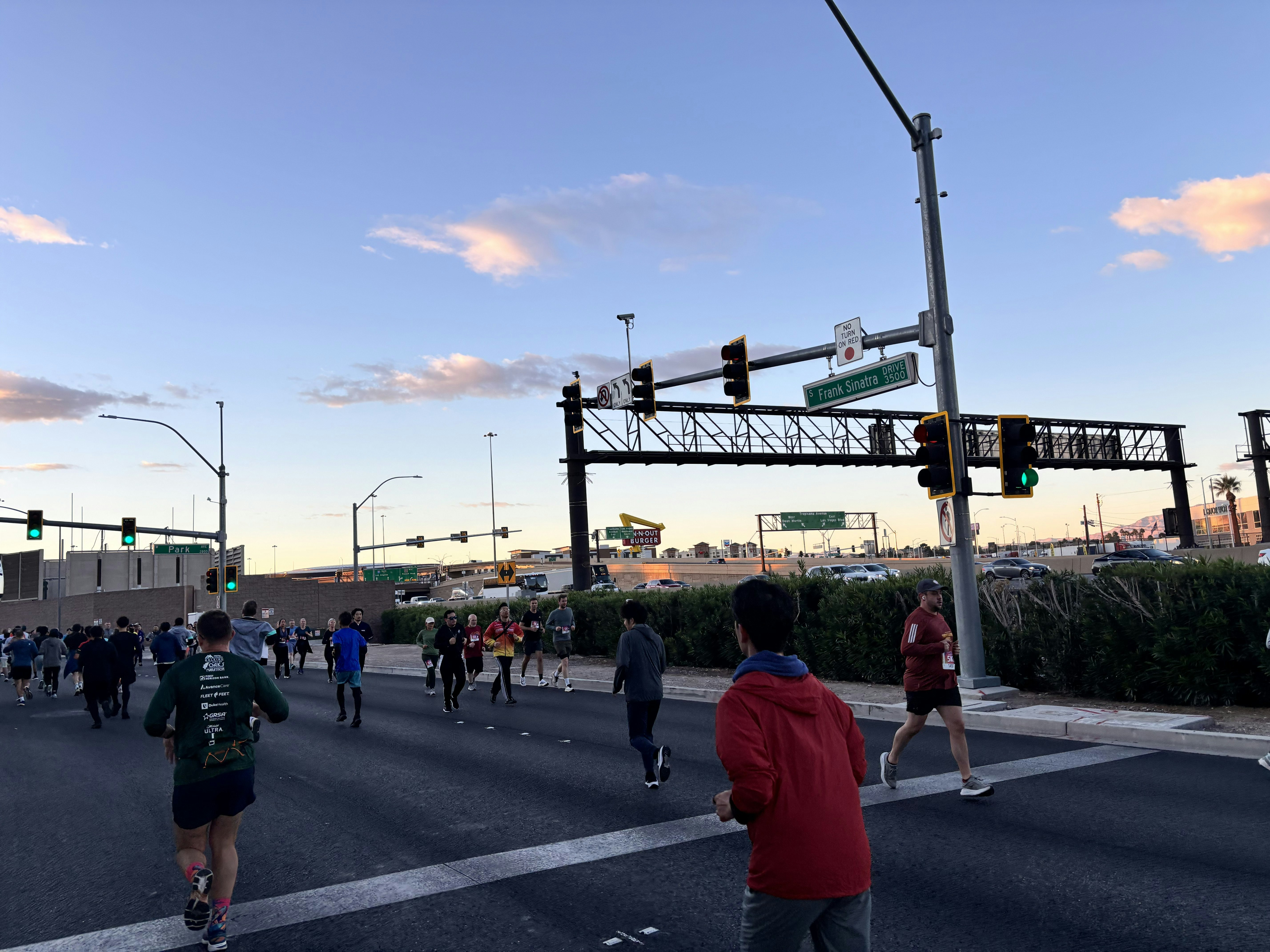 走り始めてすぐにバテてしまい、序盤以降は苦しいだけでしたが、ラスベガスの道路を封鎖して、ランニングすることができるという、非常に貴重な経験になりました。