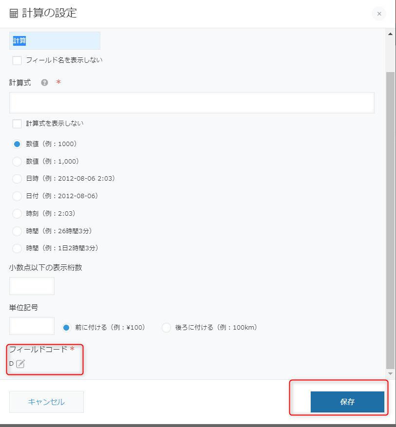 | フィールド種類 | フィールドコード | 計算式 | 備考 |