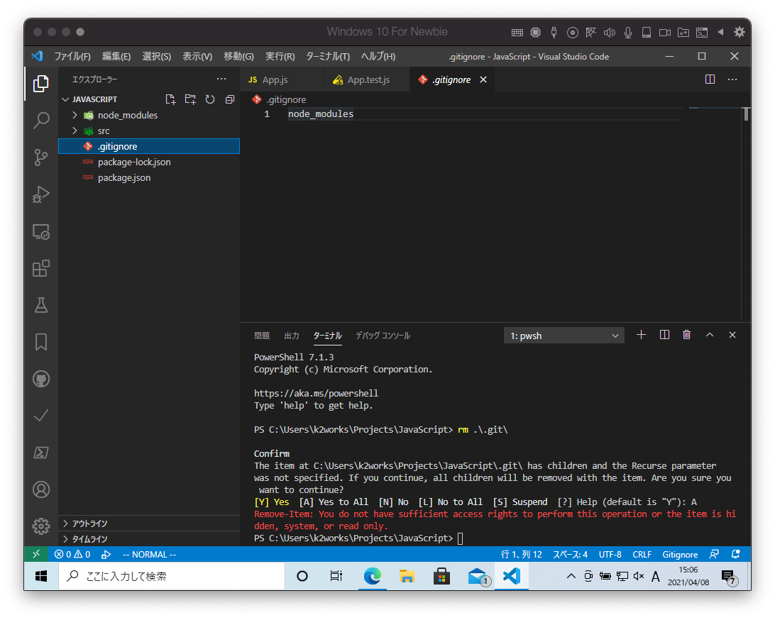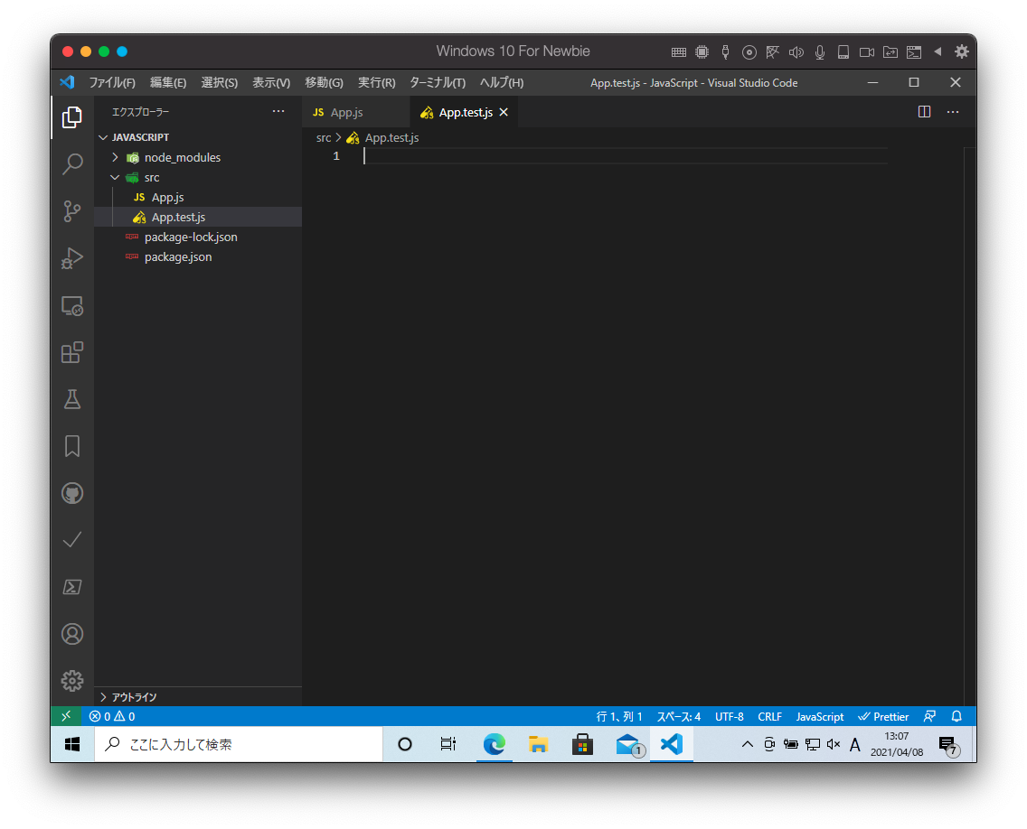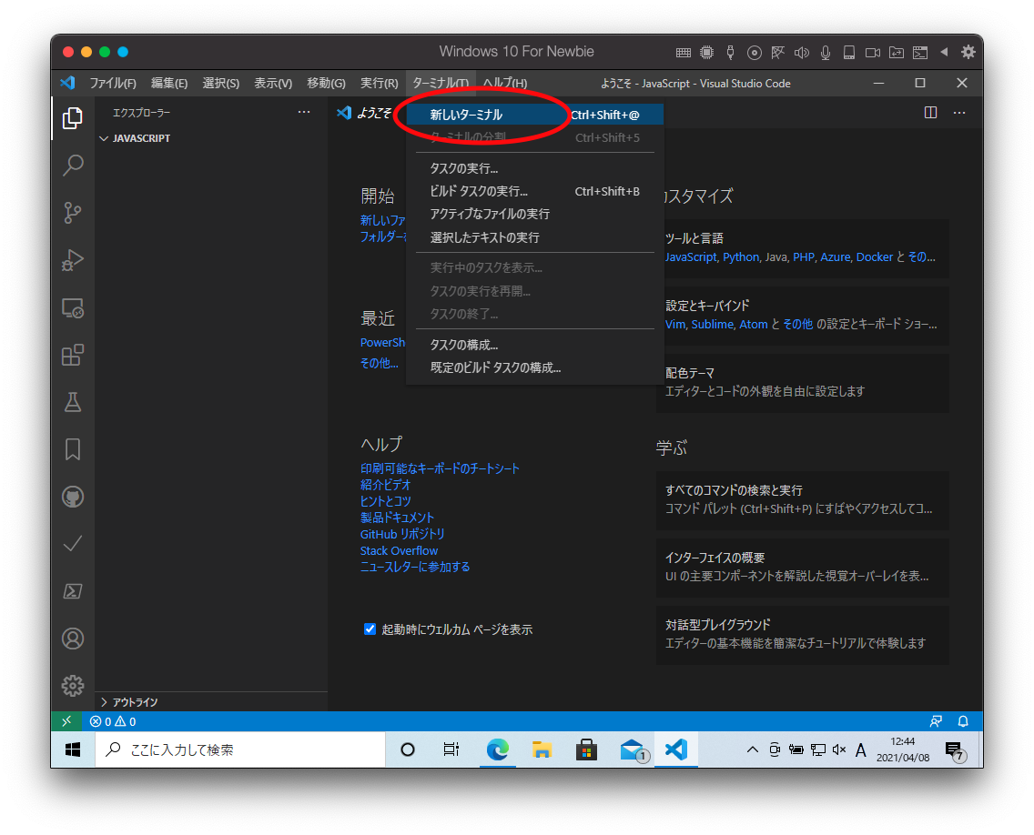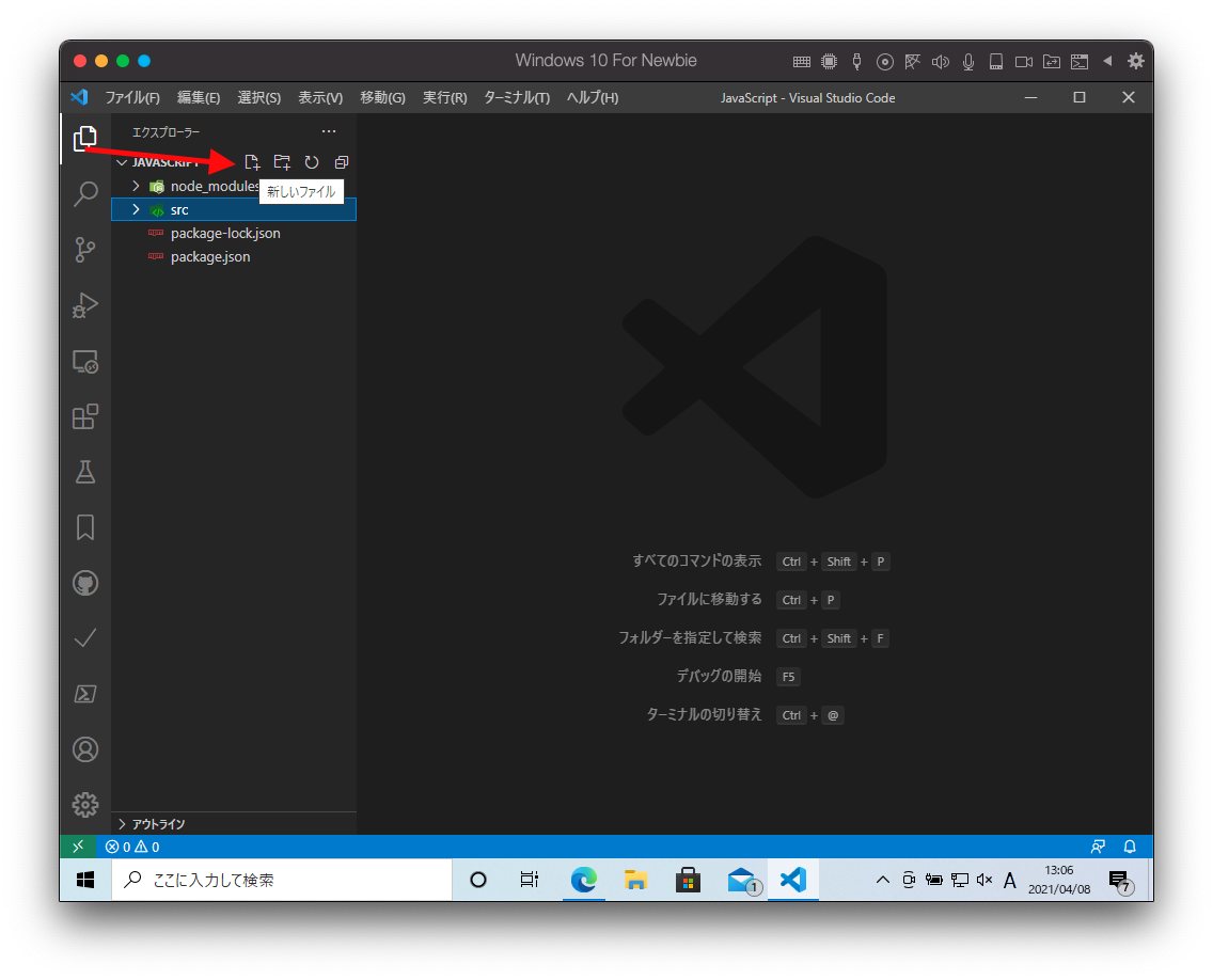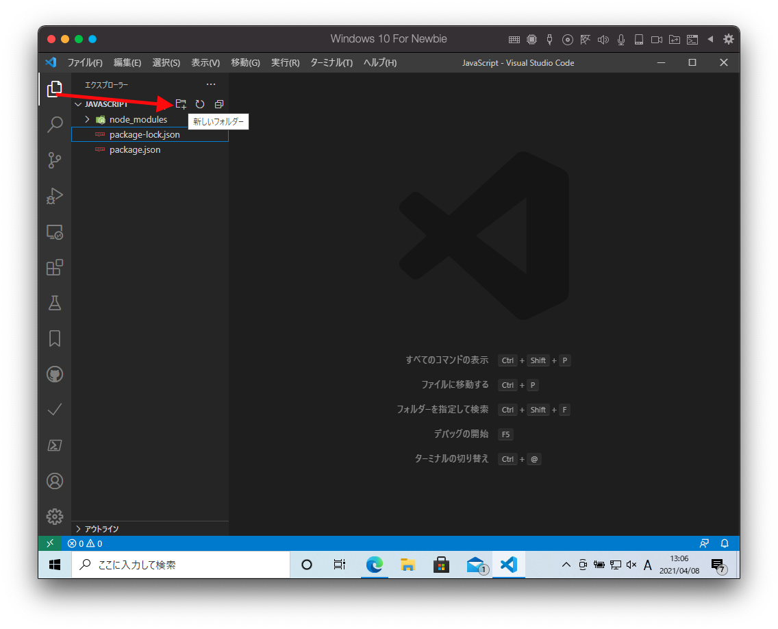 Projects フォルダ内に JavaScript フォルダを作成してエディタからフォルダを開きます。