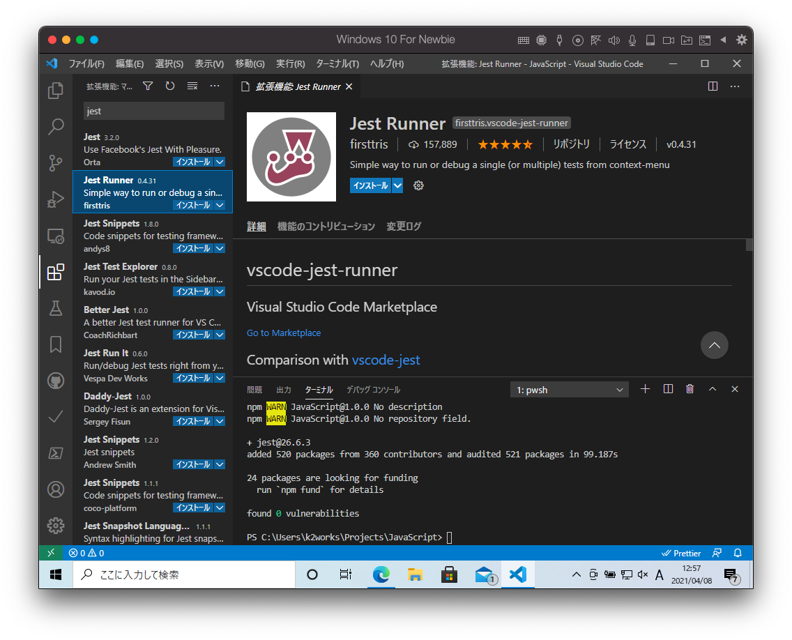 関連して Jest Runner 拡張機能をインストールしておきます。