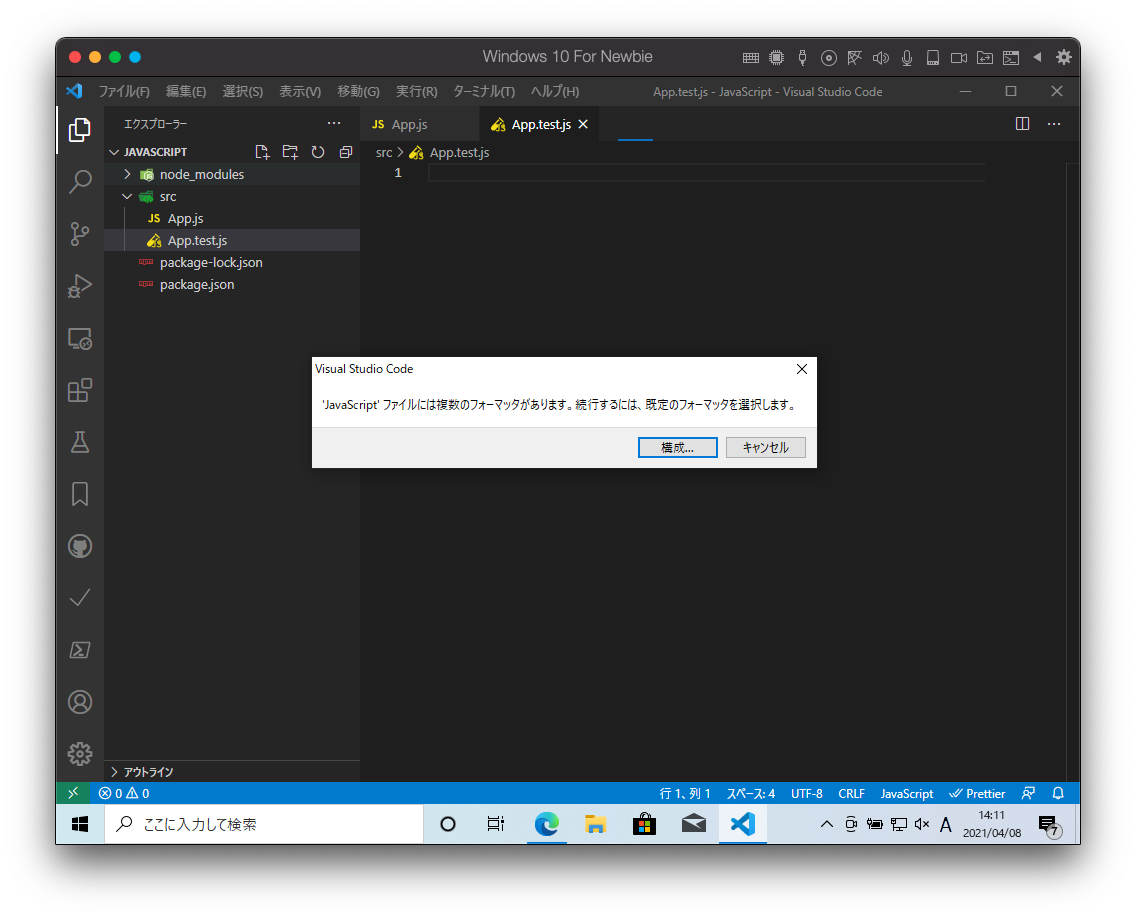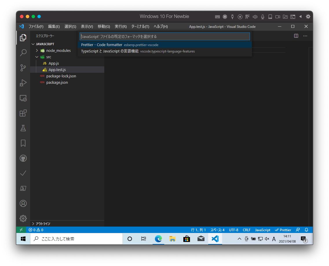 コードを入力する前にフォーマッターの設定を行います。コマンドパレットから format と入力してドキュメントのフォーマットを選択します。