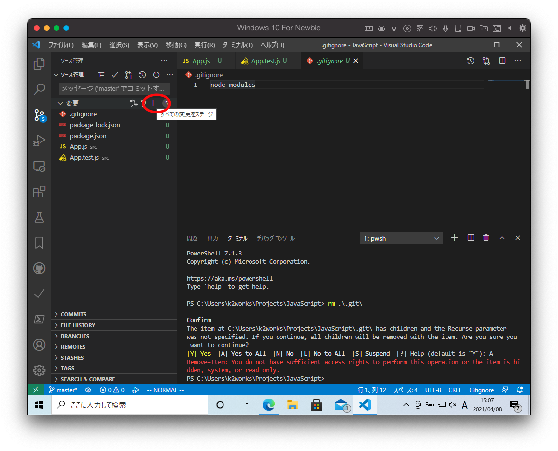 以下の内容の .gitignore ファイルを作業ディレクトリ直下に追加します。