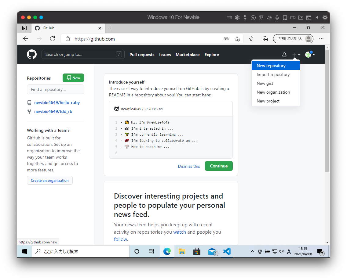 続いて、GitHubを使ってレポジトリを外部に公開できるようにしてみましょう。