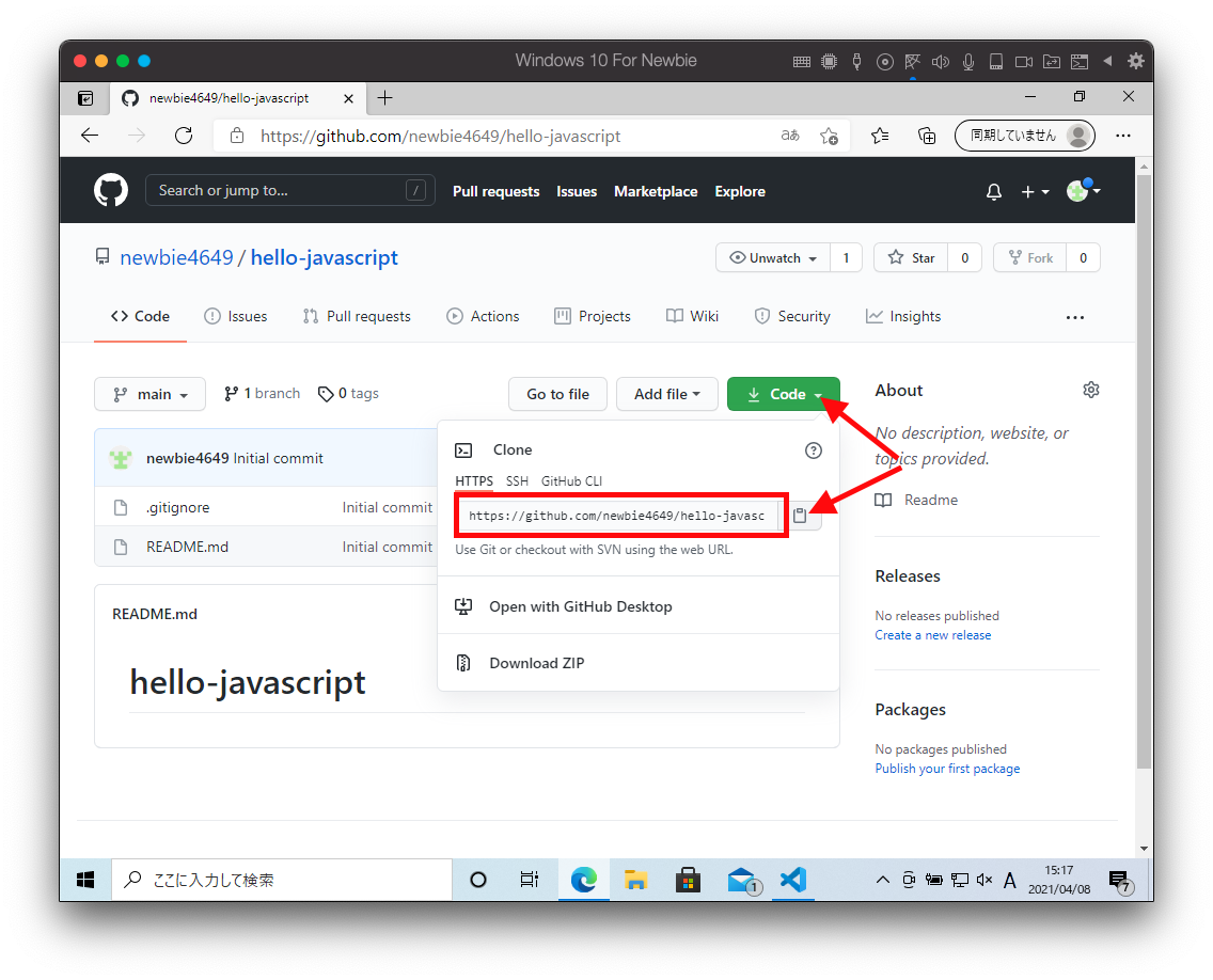 公開レポジトリが作成されたらVSCodeから読み込めるようにするためリンク先の情報を取得します。