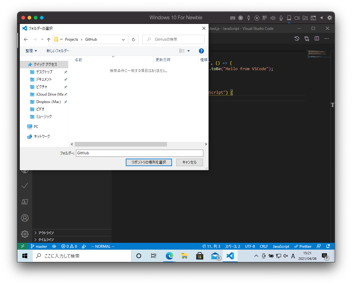 公開レポジトリの保存場所を指定する必要があるのでここでは Projects フォルダに GitHub フォルダを追加してそこに保存することにします。