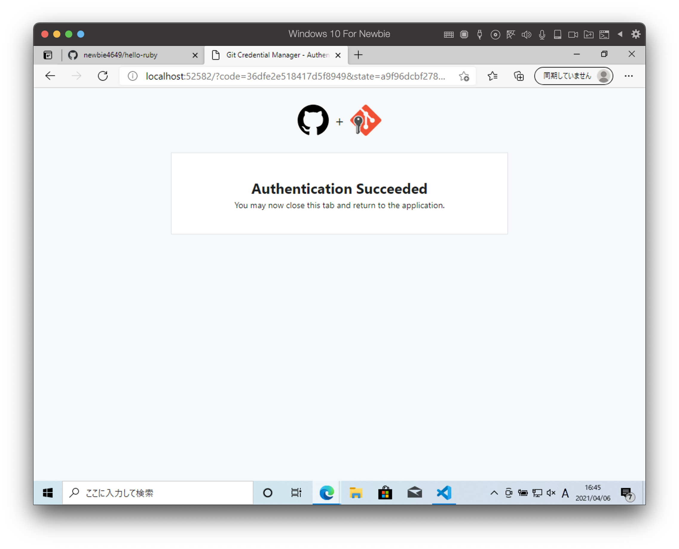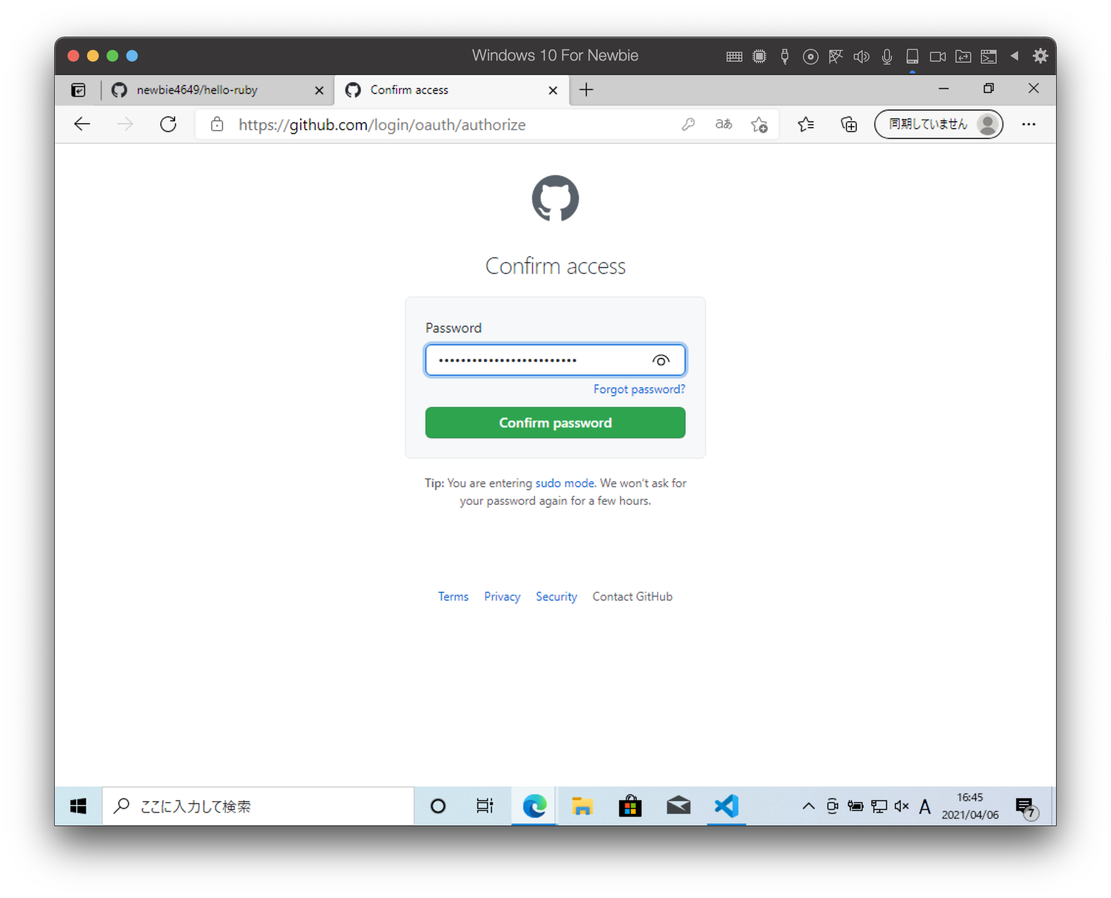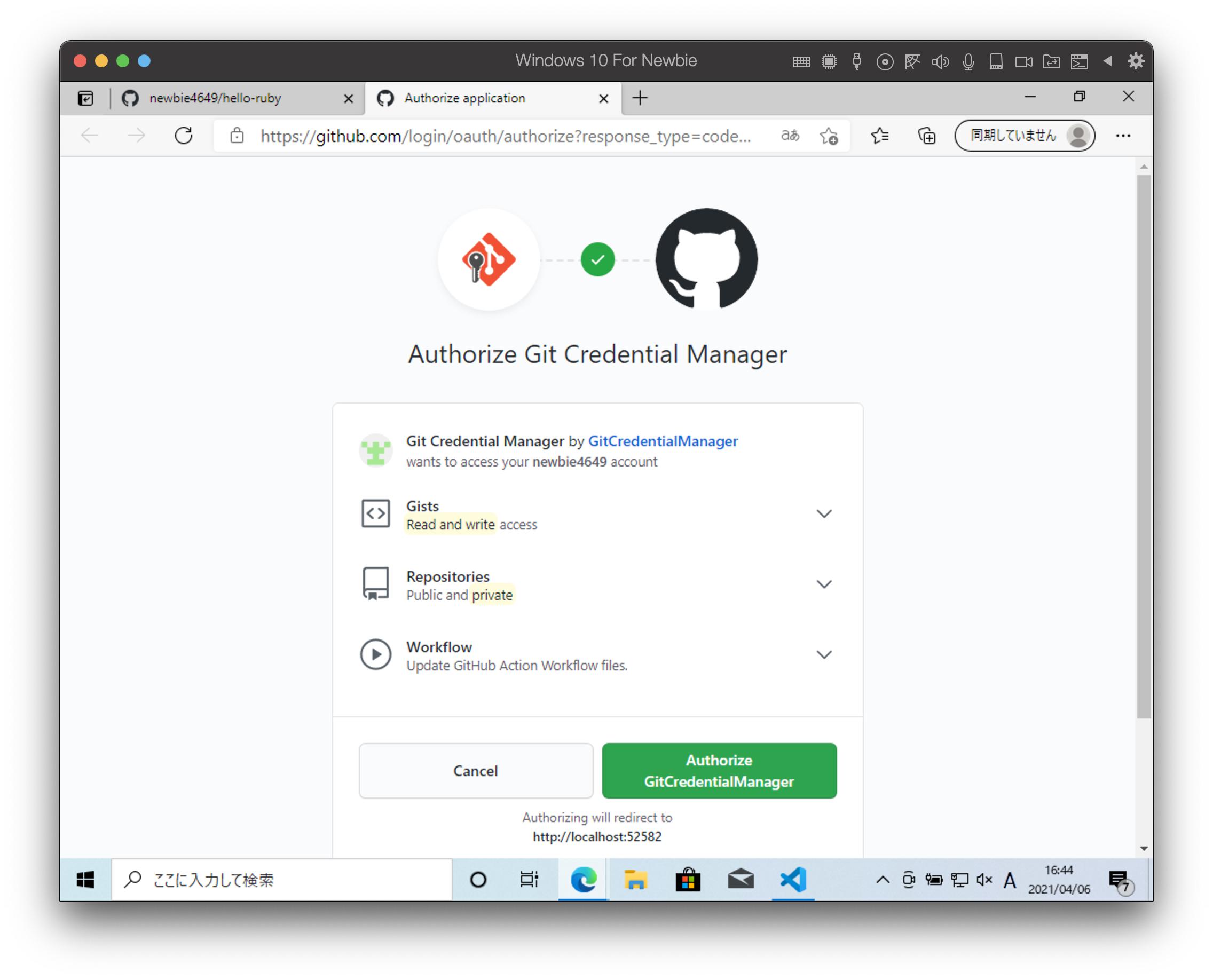 以下のGitHub認証画面が表示された場合は Sign in with your browser を押します。